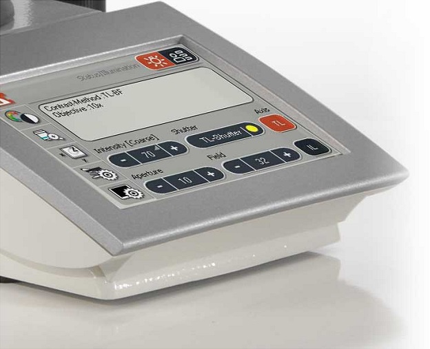 Leica DM4 M 手動工業測量顯微鏡配備的布局清晰的顯示屏令所有顯微鏡設置一覽無遺。六個功能鍵幫助輕松操作各種常用功能 — 無需從樣品查找。