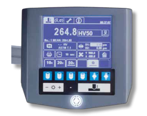 Wilson VH1150可提供300gf-50kgf的大負載范圍。自動加載選擇為用戶省去了一個難以操作的旋鈕,并開啟了自動化應用的新可能。連同可調節的底盤和傾斜的用戶界面,多尺度變換,形狀校正和USB數據輸出使硬度測試更容易,幫助您能更專注于測試過程中的控制。 多功能和擁有寬范圍顯微硬度和維氏硬度測試標尺的用戶操作系統。   技術規格 ● ?0.3 – 50kgf 十個單獨加載力 ● ?自動選擇不同試驗力 ● ?5位自動轉塔 ● ?高質量LED燈光照明 ● ?可選的Hi Res CCD 攝像頭整合在硬度計內部 – 鏈接線不外露 ● ?USB 數據輸出CSV文件,易于在Excel 打開 ● ?試驗周期 – 自動加載砝碼 ●? 試件高度可達210mm ● ?試臺 – φ60mm平試臺(標準);V型臺,手動或自動XY平臺可選 ● ?用戶界面 – 4.7in 多語言LCD觸摸屏+物理按鍵 ● ?XY – 平臺可選 – 100×100mm 手動平臺,25×25mm 行程,行程100×100mm ● ?符合標準 – ISO 6507、ATSM E384 ● ?電源 – 370W、100-240VAC,50/60Hz