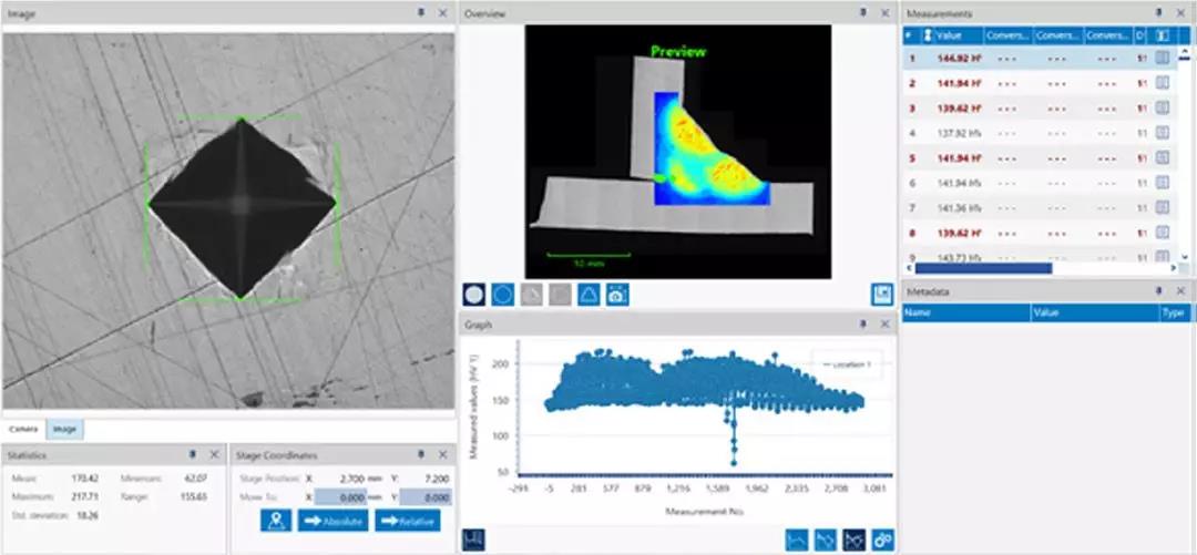 DiaMet 不僅能很大的提高焊接測試的效率與準(zhǔn)確性,還可以進一步展示焊接區(qū)域的硬度分布,幫助使用者進行數(shù)據(jù)分析。