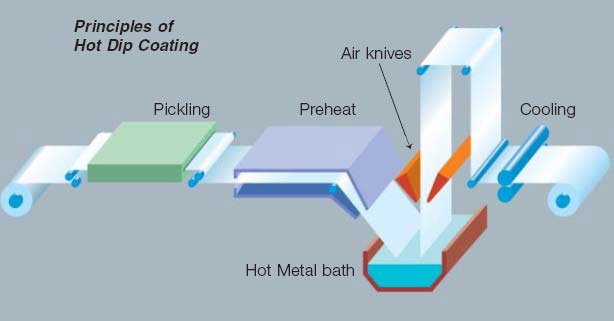 2、各種熱浸鍍鋅(鋅合金)薄板的工藝
