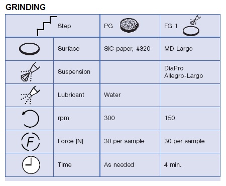 ●? 鋅與水的反應(yīng)使樣品清洗困難。在磨制過(guò)程可以不考慮,但是在金剛砂拋光時(shí)清洗劑推薦用添加異丙醇的酒精,用清潔的壓縮空氣干燥。