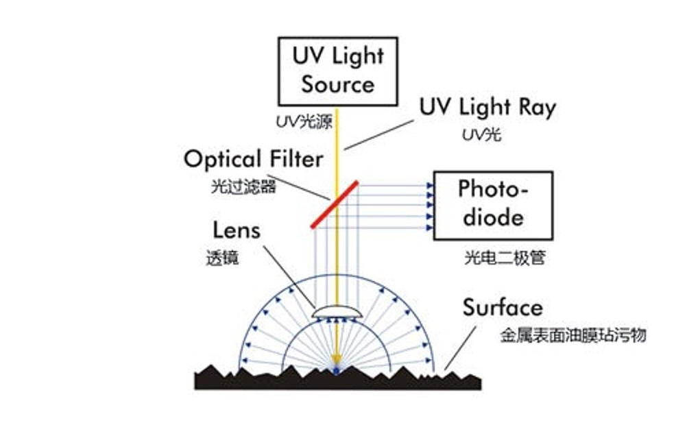 通俗來講,紫外線激發熒光,當污染物電子吸收了光子后能量提高,形成電子云層躍遷,由低能級躍遷到高能級,但在高能級的狀態是不穩定的,它回到起初的能級,并釋放出能量。由于部分能量轉化為熱量消耗了,所以發射的光子能量降低,波長變長。   對于普遍清潔工藝的污染物,析塔SITA表面清潔度儀的測試參數設計恰當。由于有機物被UV光激發后具有很強的自體熒光特性,因此該儀器能檢測出油脂和殘余表面活性劑、潤滑油等有機污染物。此外,它也可監測防腐劑或粘膠劑等油膜層的厚度。